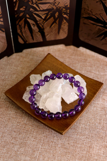 Crafted from polished amethyst beads, this bracelet captures the quiet grace of twilight. A minimalist design ideal for daily wear or as a spiritual charm.