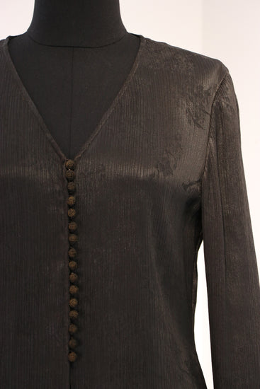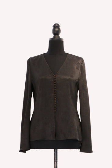 Black Xiangyun Silk V-neckline Blouse 黑色香雲紗V領上衣