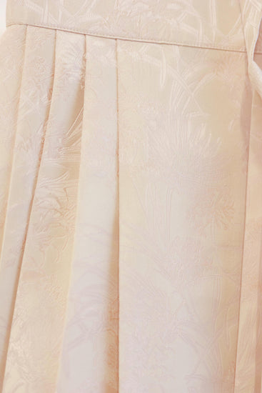 A Mamian skirt crafted from luxurious brocade, adorned with pink jacquard patterns and delicate French embroidery, blending Eastern tradition with Western artistry.