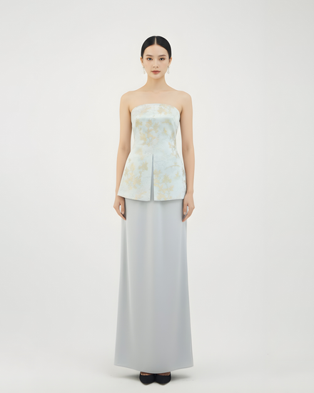 Strapless Silk Jacquard Top in Silver Blue 銀藍真絲提花抹胸上衣