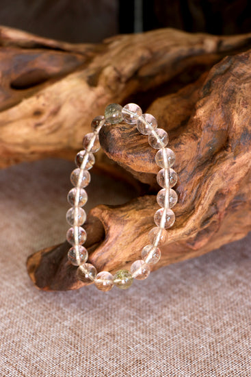 This bracelet combines the cool clarity of quartz with the golden threads of rutilated stone, like sunlight frozen within crystal. A calm yet vibrant presence on the wrist.