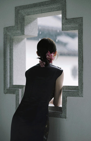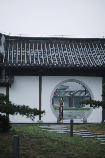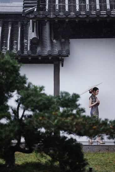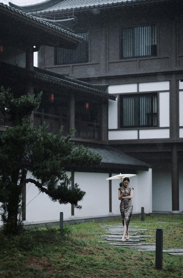 This Grey Nishijin Brocade Qipao is a one-of-a-kind masterpiece, crafted from an exclusive fabric roll that allows only a single creation. Luxurious and intricately woven, its rich texture embodies prestige and sophistication. Perfect for weddings and grand occasions, this qipao is a true symbol of elegance and status.