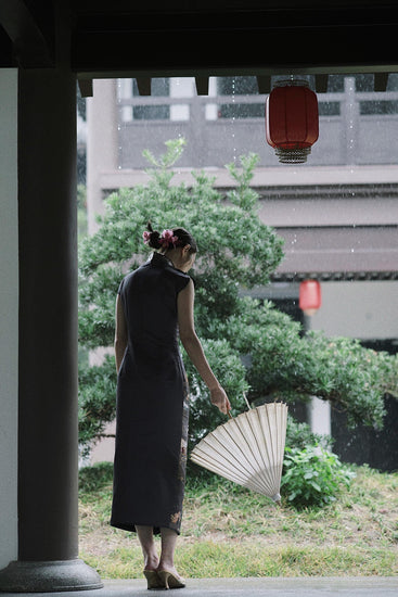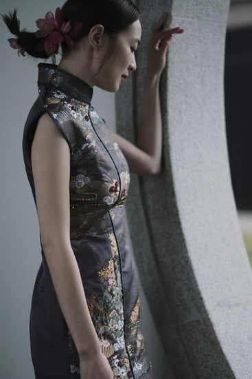 Grey Nishijin Brocade Qipao (Exclusive Piece) 灰色繁花西陣織旗袍(孤品)