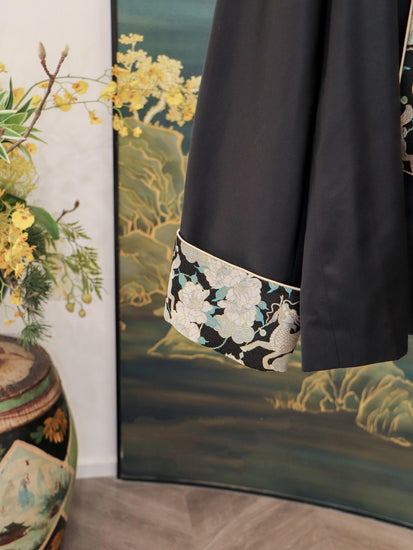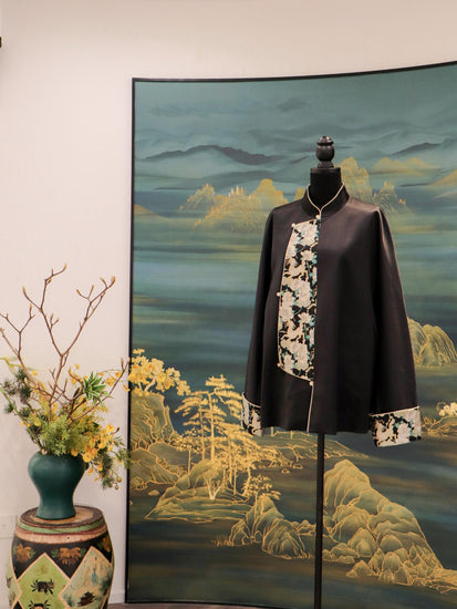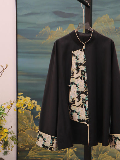 Crafted from premium double cocoon silk with Song brocade accents at the front and cuffs, this men’s Tang-style jacket balances tradition and modern elegance. The stand-up collar and traditional frog buttons embody classical aesthetics, while the structured silhouette and intricate brocade reflect refined taste—ideal for formal occasions or everyday cultural wear.