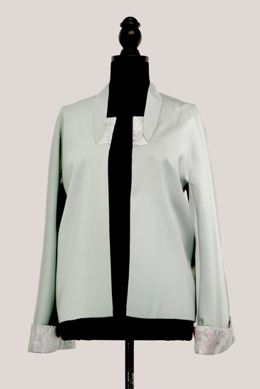 Moss Green Jacket with Nishijin Weave Panels 豆沙綠西陣織拼接外套