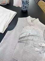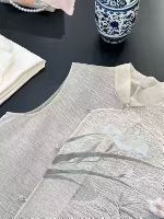 Graceful as drifting mist, this vest features handwoven orchid and bamboo motifs in soft pastel tones, brought to life by the ancient Kesi silk weaving technique. The standing collar and asymmetric front panel echo classical Chinese tailoring, elevated by delicate pearl buttons. Light and breathable, it's ideal for spring and summer layering, revealing a quiet elegance with every movement.