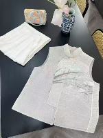 疏影橫斜,蘭姿如風。此款馬甲以緙絲工藝呈現蘭花與修竹的寫意紋樣,淡雅色調如晨霧輕拂。立領斜襟結構呼應傳統中式剪裁,搭配珍珠盤扣點綴,優雅靈動。整體輕盈通透,適合春夏搭配,舉止間盡顯溫柔內斂之美。