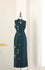 Peacock Blue Hand-Embroidered Sheer Qipao with Teardrop Collar (Exclusive Piece) 孔雀藍手繡紗水滴領旗袍 (孤品)