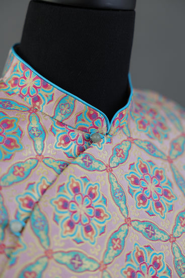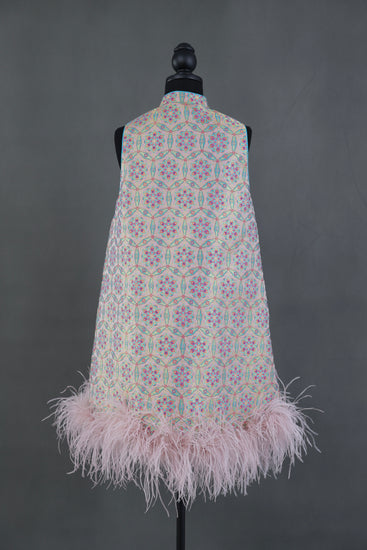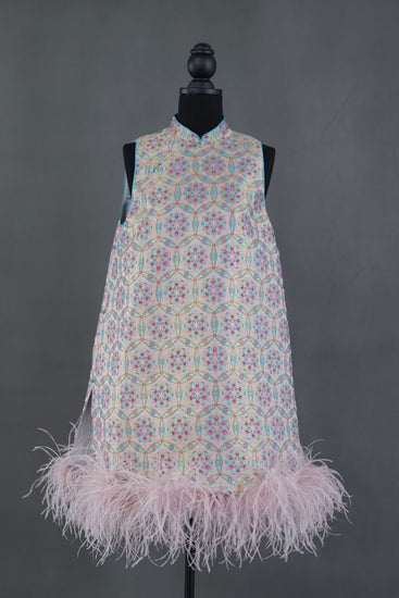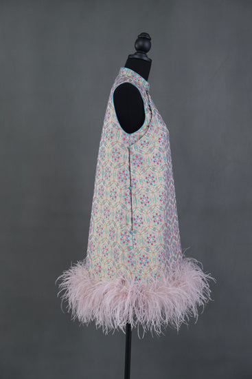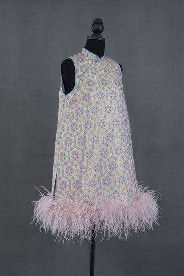 Pink Song Brocade & Ostrich Feather New Chinese Dress 粉色宋錦鴕鳥毛新中式連衣裙