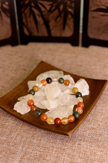 An array of colorful quartz beads weaves together Eastern harmony and Western flair — a playful yet elegant statement.