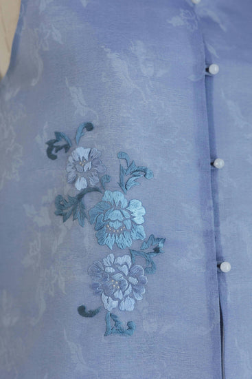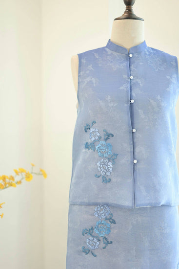 Starry Blue Hand-Embroidered Sheer Sleeveless Set (Exclusive Piece) 星藍手繡紗無袖套裝 (孤品)