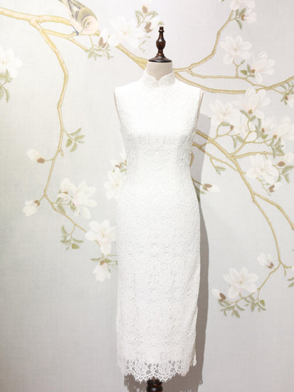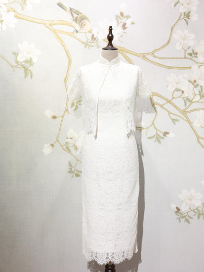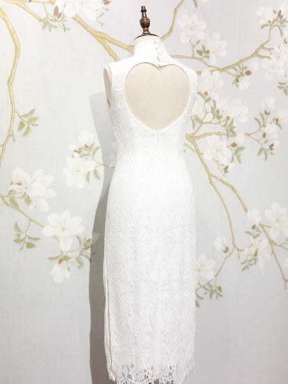 White Lace Heart Cutout Qipao Set 白色蕾絲心形鏤空旗袍套裝