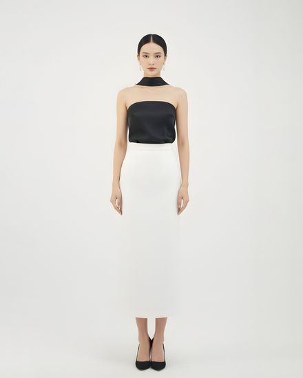 White Silk Jacquard Midi Skirt 白色真絲提花中長裙